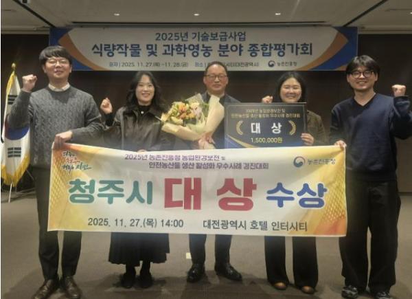 [한국제일신문, 김성옥기자] 청주시농업기술센터는 농촌진흥청이 주관한 ‘2025년 농업환경보전 및 안전농산물 생산 우수사례 경진대회’(이하 경진대회)에서 대상(전국 1위)을 수상했다고 28일 밝혔다.