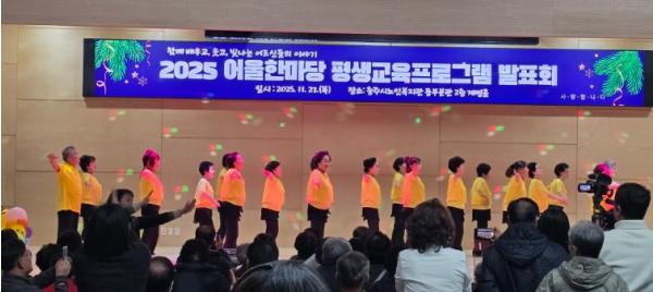 [한국제일신문, 김성옥기자] 충주시노인복지관은 지난 27일 동부분관에서 노인들의 1년간 학습 성과를 나누고 지역사회와 함께하는 화합의 장인 ‘2025 어울한마당 평생교육프로그램 발표회’를 성황리에 개최했다고 밝혔다.