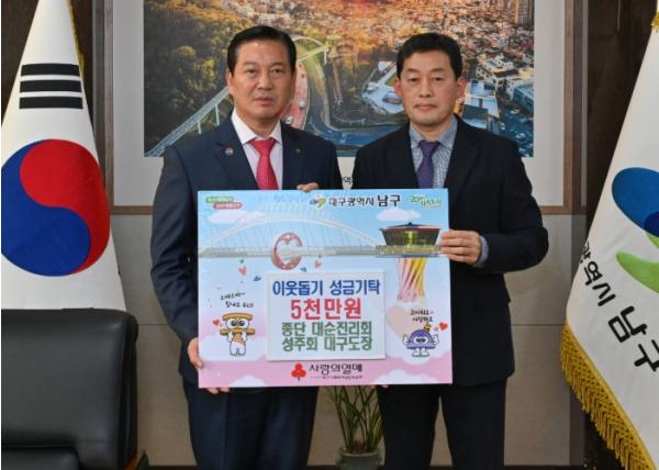 [한국제일신문, 김성옥기자] 종단 대순진리회 성주회 대구도장은 지난 24일, 대구 남구청을 방문해 성금 5,000만원을 기탁했다.