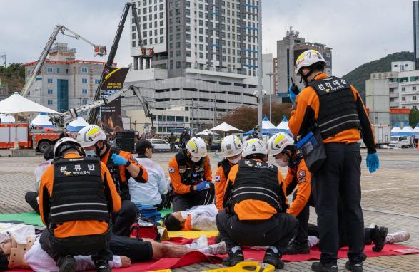 이번 훈련은 소노캄 호텔 일원에서 지진으로 인한 건물 붕괴와 선박 화재가 동시 발생하는 복합재난 상황을 가정하여 진행됐다.