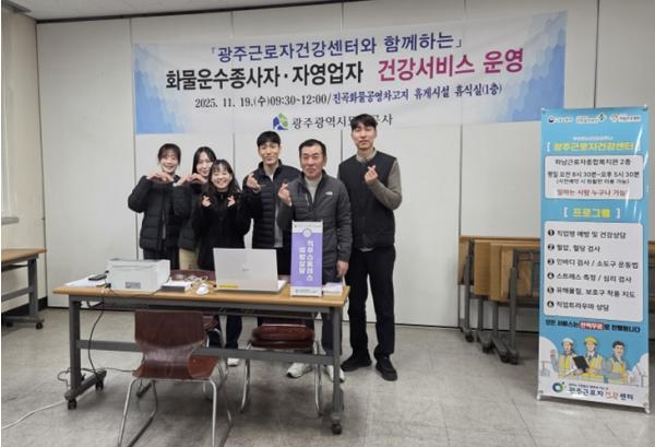 광주도시공사(사장 김승남)는 19일 진곡화물공영차고지 1층 휴게실에서 광주근로자건강센터와 함께 화물운수종사자와 자영업자를 대상으로 건강상담부터 뇌심혈관계 질환 예방, 건강진단 사후관리까지 아우르는 종합 ‘건강서비스’를 운영했다고 밝혔다.