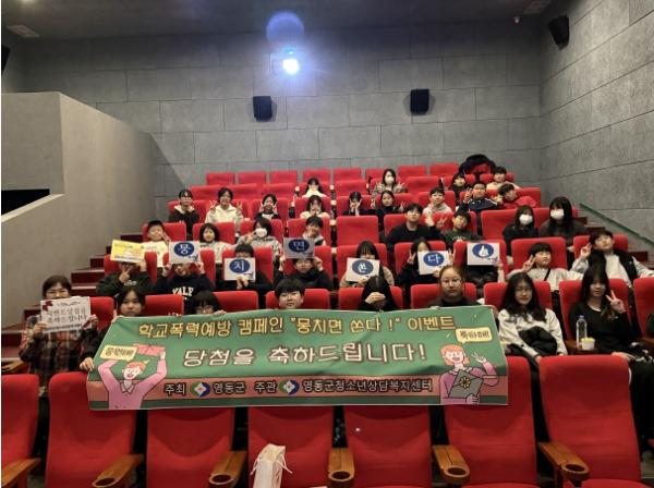 [한국제일신문, 김성옥기자] 충북 영동군청소년상담복지센터(센터장 신춘옥)는 청소년과 학부모를 대상으로 SNS를 활용한 온라인 학교폭력예방 캠페인 ‘뭉치면 쏜다!’ 이벤트를 6년째 이어오며 큰 호응을 얻고 있다.
