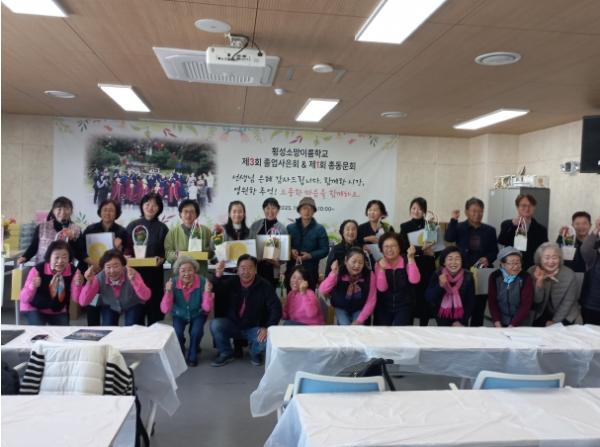 [한국제일신문, 김성광기자] 횡성군은 성인 문해 학습장인 횡성소망이룸학교의 제3회 졸업사은회 및 제1회 총동문회를 28일 평생학습관 5층 다목적강당에서 개최했다.