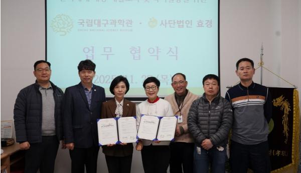 국립대구과학관(관장 이난희)은 27일 사단법인 효경(이사장 김양희)과 지역 실버 세대의 교육 및 복지 활동 활성화를 위해 업무협약(MOU)을 체결했다.