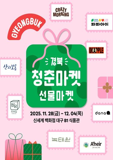 [한국제일신문, 김성옥기자] 경상북도는 지역 청년창업기업의 판로 확대를 위해 11월 28일부터 12월 4일까지 신세계대구 백화점 지하 1층에서 ‘경북청춘마켓:선물마켓’ 팝업스토어를 운영한다.