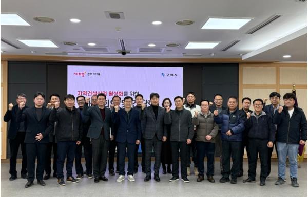[한국제일신문, 김성옥기자] 구미시는 28일 시청 3층 대회의실에서 도시건설국장 주재로 ‘지역건설산업 활성화를 위한 대책회의 및 간담회’를 개최했다. 이날 간담회에는 대한전문건설협회 구미시운영위원회, 대한기계설비건설협회 경북도회, 공동주택 등 주요 대형 건설현장 관계자와 구미시 관계 부서장 등 60여 명이 참석해 지역 건설산업 활성화와 상생 방안을 논의했다.