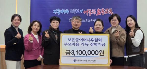 [한국제일신문, 김성옥기자] 보은군 어머니후원회는 11월 28일 보은교육지원청을 방문해 지역 학생들의 학습 기회 확대와 교육복지 향상을 위해 장학금 310만원을 기탁했다고 12월 1일 밝혔다.