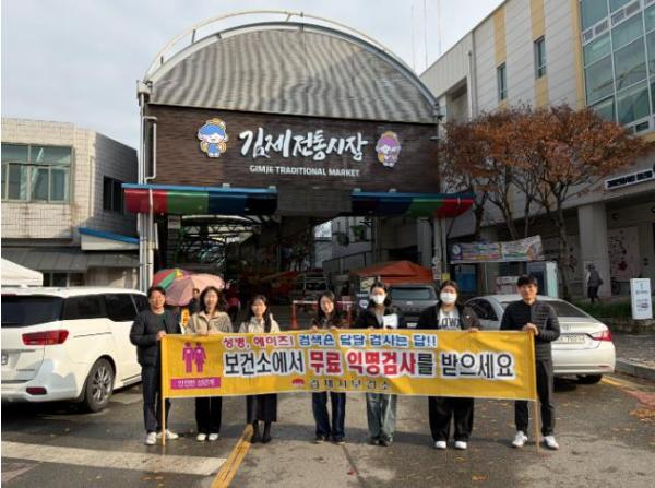 [한국제일신문, 이미란기자] 김제시는 지난달 27일 “제38회 세계 에이즈의 날(12월 1일)”을 맞아 보건소 앞 전통시장에서 시민을 대상으로 세계 에이즈의 날 현장 캠페인을 전개했다고 밝혔다.