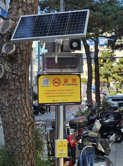 구는 현장 실태조사와 민원 분석을 토대로 상습 흡연으로 인한 신고가 반복되는 구역과 흡연 과태료 적발이 많은 장소 위주로 설치 장소를 선정했다. 금연벨은 태양광 전력으로 운영돼 별도의 전원 연결이 필요 없어 설치와 관리가 용이하다.