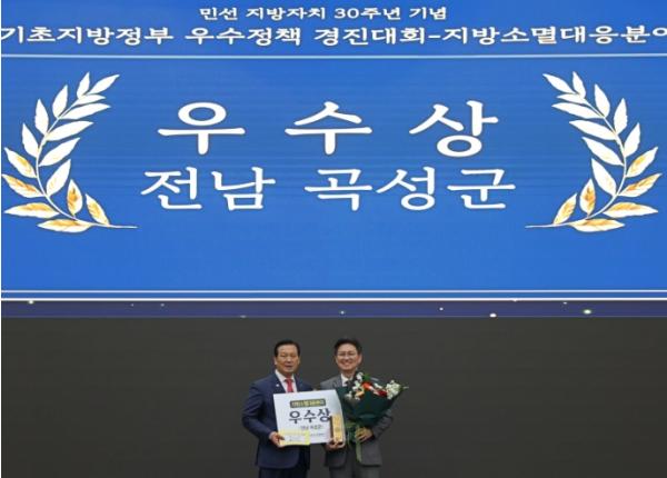 [한국제일신문, 윤진성기자] 전남 곡성군이 지난 26일 충남 보령시에서 열린 ‘2025년 기초지방정부 우수정책 경진대회’에서 지방소멸대응 분야 우수상을 받았다고 1일 밝혔다.
