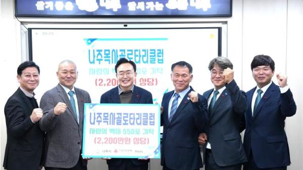 지난달 27일 시청 소회의실에서 열린 기탁식에는 윤병태 나주시장과 나주목사골 로타리클럽 김선태 회장 등 관계자들이 참석했다.