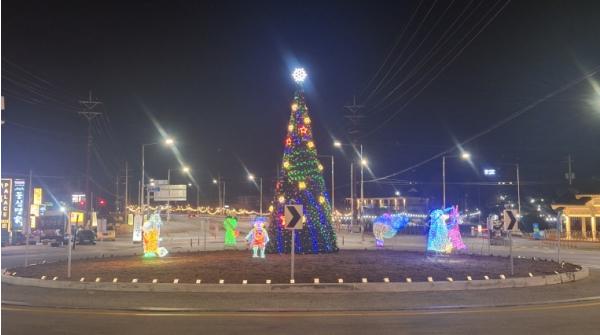 철원군 고석정 회전교차로 야간조명 '연말 분위기 물씬'