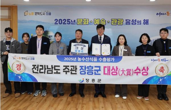 [한국제일신문, 윤진성기자] 장흥군이 ‘2025년 전남 농수산식품 수출 우수 시·군’ 평가에서 대상(大賞)을 수상했다.