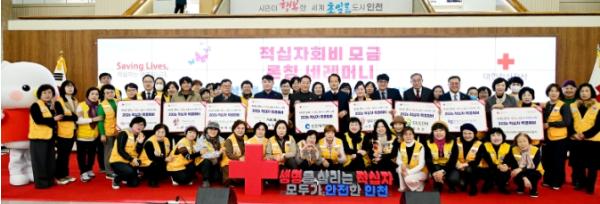 [한국제일신문, 김성옥기자] 인천광역시는 12월 1일 인천시청 중앙홀에서 열린‘점프(JUMP) 2026 적십자 인천’ 행사에서 대한적십자사 인천지사(회장 조의영)에 특별회비 1,000만 원을 전달하며 지역사회 나눔 문화 확산에 앞장섰다.