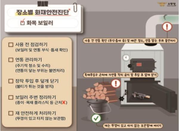 특히 불조심 강조의 달을 맞아, 겨울철 화재 위험 요인 중 하나인 화목보일러 안전 수칙을 알리고자 한다.
