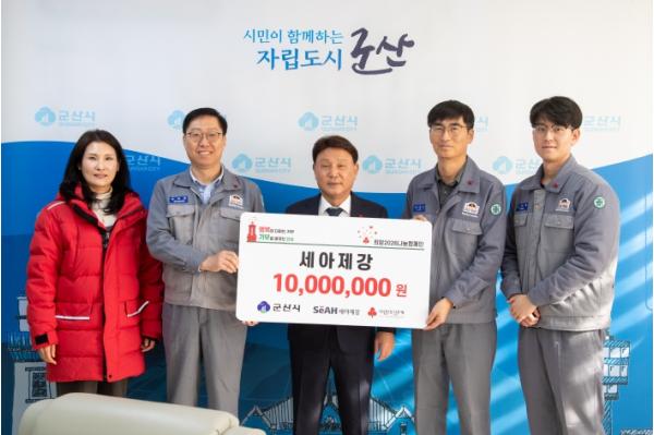 한편 ㈜세아제강은 지난 11월 23일, 임직원·가족 50여 명이 참여하여 옥구읍과 조촌동 일대 10가구에 연탄나눔 봉사활동을 진행했으며, 난방취약계층 가정에 연탄을 직접 배달해 따뜻한 온기를 전하기도 했다.