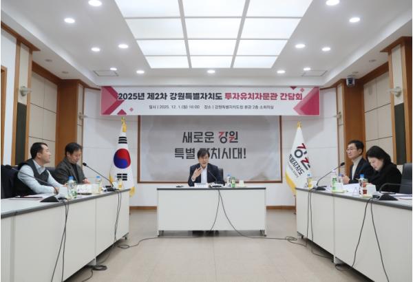 [한국제일신문, 김성옥기자] 강원특별자치도는 12월 1일 도청 본관에서 도내 투자유치 활성화를 위한 전략을 논의하고자 '2025년 제2차 투자유치자문관 간담회'를 개최했다고 밝혔다.