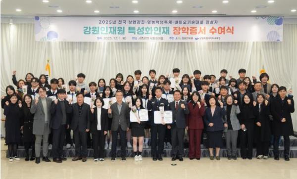 [한국제일신문, 김성옥기자] 강원특별자치도교육청은 12월 1일, 춘천 세종호텔에서 전국대회에서 우수한 성적을 거둔 도내 특성화고 학생들을 격려하기 위한 장학증서 수여식을 개최했다.