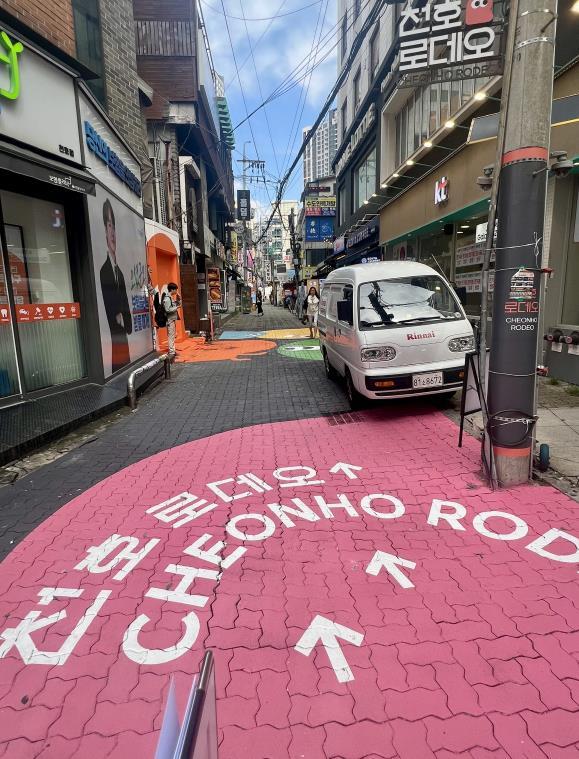 천호동로데오거리는 다양한 먹거리와 활발한 유동 인구를 갖춘 강동구 대표 상권이다. 최근 이어진 재건축·재개발로 젊은 층과 가족 단위 인구가 늘면서, 가로 환경 개선 필요성도 더욱 커진 지역이다.