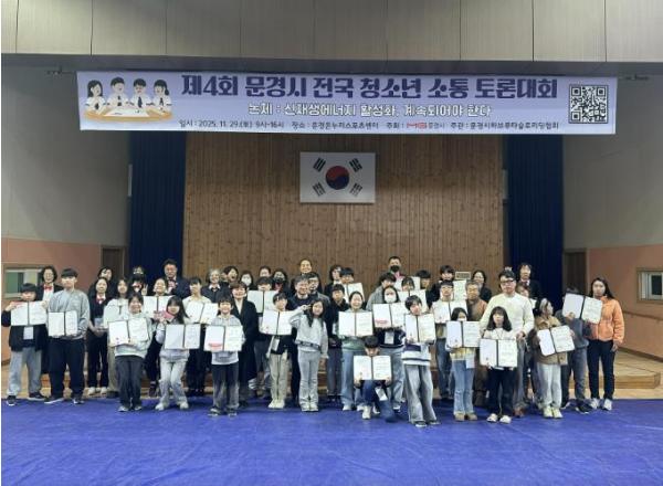 [한국제일신문, 김성옥기자] 문경시는 11월 29일 문경시온누리스포츠센터에서 전국 초·중학생 등 130여 명이 지원한 가운데 ‘제4회 문경시 전국 청소년 소통 토론대회’를 성황리에 열었다.