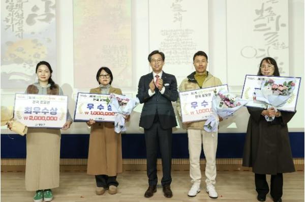 [한국제일신문, 윤진성기자] 영암군이 12/1일 군청에서 ‘2025년 제2회 영암 인문캘리그래피 전국 공모전’ 시상식을 열고, 15개 수상작에 시상했다.