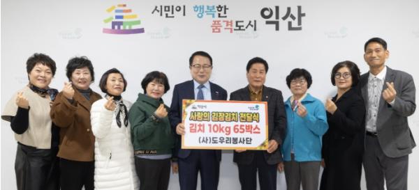 ㈔도우리봉사단(회장 김선교)은 2일 익산시청을 찾아 김장김치 10㎏ 65상자를 기탁했다.