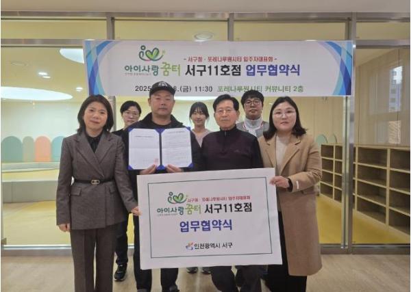 [한국제일신문, 김성옥기자] 인천 서구와 포레나루원시티 입주자대표회는 지난 11월 28일 아파트 관리동에 ‘아이사랑꿈터’ 설치를 위한 무상임대차계약을 체결했다.