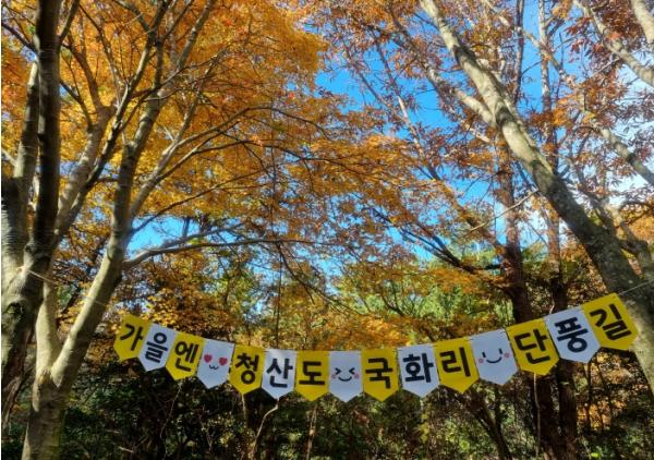 청산도 국화리 단풍길은 슬로길 9코스로 상수원 입구에서부터 지리 청송 해변까지 약 3.2km이며, 도보로 약 1시간 정도 소요된다.