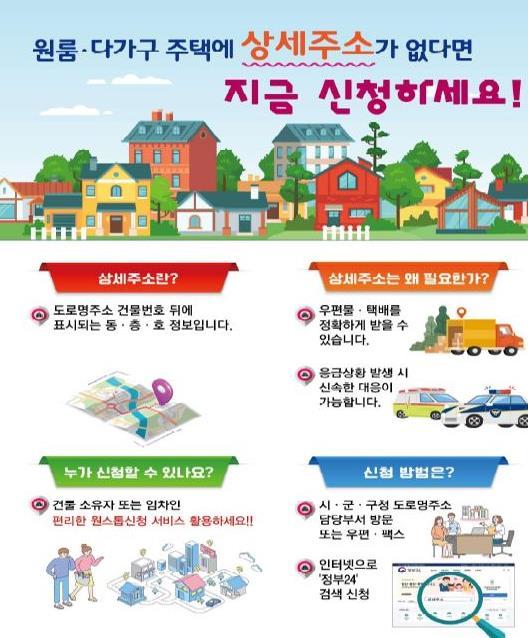 상세주소는 등기부등본이나 건축물대장에 동·층·호가 등록되지 않은 단독·다가구주택에 행정기관이 별도의 식별 주소를 부여하는 제도다. 상세주소가 없으면 거주자의 건물 내 위치 확인이 어려워, 응급 구조나 화재 등의 상황에서 골든타임 확보가 힘들고 각종 고지서·우편물이 정확하게 전달되지 못하는 문제가 발생할 수 있다.