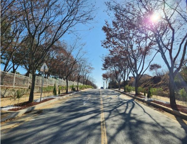 기존 느티나무 가로수 아래에는 사계절 푸른 상록 관목인 문그로우를 식재해 안정감 있는 녹지 경관을 조성했고, 겨울철 붉은 열매가 아름다운 피라칸사스를 함께 식재해 계절별 볼거리를 높였다.