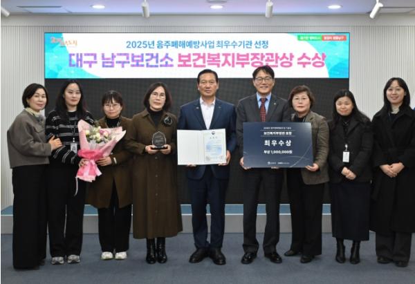 대구 남구보건소가 보건복지부 주관 ‘2025년 음주폐해예방사업 평가’에서 최우수기관으로 선정되어 보건복지부장관상을 수상했다.