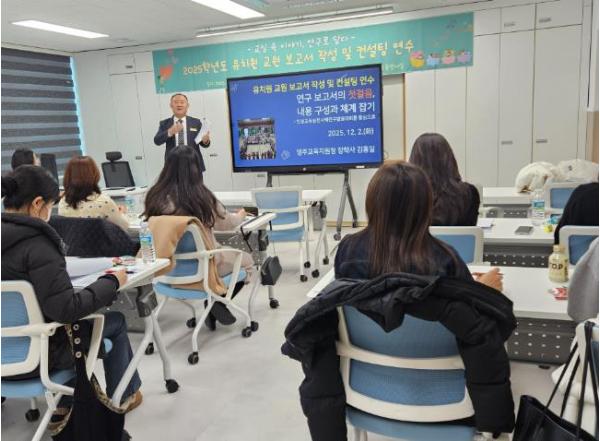 [한국제일신문, 김성옥기자] 경상북도영주교육지원청은 12월 2일, 유치원 교원의 연구 보고서 작성 역량 강화를 위한 '2025학년도 유치원 교원 보고서 작성 및 컨설팅 연수'를 실시했다.