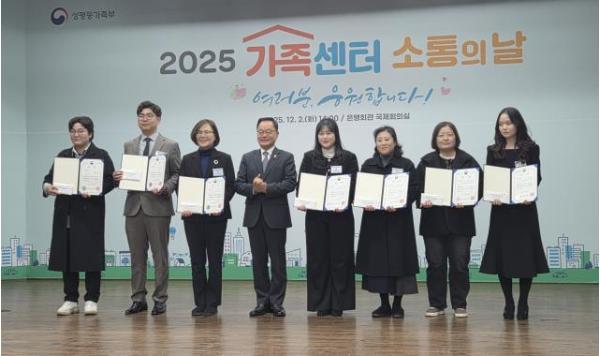 [한국제일신문, 김성옥기자] 성주군가족센터는 '2025년 가족서비스 프로그램 및 이용수기 공모전' 이용수기 부문에서 성평등가족부장관상(최우수상)을 수상했다고 2일 밝혔다.