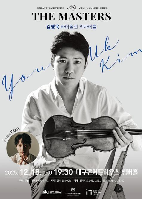 [한국제일신문, 김성옥기자] 대구콘서트하우스의 독주회 시리즈 공연인 ‘The Masters’(이하 ‘더 마스터즈’)의 '김영욱 바이올린 리사이틀'이 12월 18일 오후 7시 30분 대구콘서트하우스 챔버홀에서 개최된다.