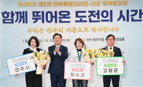 이번 협의회에서는 '특별한 100년을 향한 전북특별자치도 출범', '새만금 이차전지 특화단지', '전주 하계올림픽 국내후보도시 선정', '전주권 광역교통 기반 구축' 등 민선 8기 도-시군 협력 성과를 공유하는 시간도 가졌다.