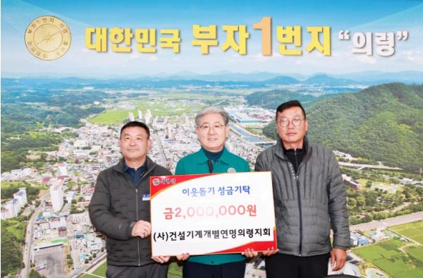 [한국제일신문, 김성옥기자] 의령군은 지난 1일 의령군청에서 (사)건설기계개별연명 의령지회와 이웃돕기 성금 기탁식을 가졌다고 밝혔다.