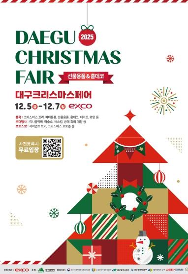 [한국제일신문, 김성옥기자] 대구 북구청은 오는 2025년 12월 5일부터 7일까지 3일간 엑스코 서관 제1전시장에서 열리는 ‘2025 대구 크리스마스페어’에 참여해 관광홍보부스를 운영하여 북구가 가진 다양한 관광매력을 방문객들에게 선보일 계획이다.