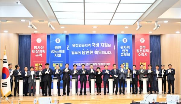 참석자들은 전국 원전 인근 지역 동맹 행정협의회 출범을 선언하고 원전 사고 위험에 노출된 채 살아가고 있는 원전 인근지역 23개 지자체 503만 주민들 대신해 원전 인근지역 주민 보호 대책 마련 및 불합리한 원전 제도 개선 등을 건의하는 결의문을 발표했다.