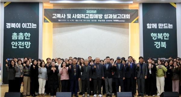 [한국제일신문, 김성옥기자] 경상북도는 4일 안동그랜드호텔에서 도・시군 공무원과 통합사례관리사, 행복기동대 등 100여 명이 참석한 가운데‘2025년 고독사 및 사회적고립 예방 성과보고대회’를 개최했다.