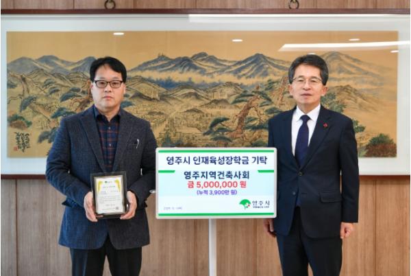 (재)영주시인재육성장학회(이사장 김자여)는 지난 4일 영주지역건축사회, ㈜조은소방, 이대성·황영숙 부부가 지역 인재 육성을 위해 총 900만 원의 장학금을 기탁했다고 밝혔다.