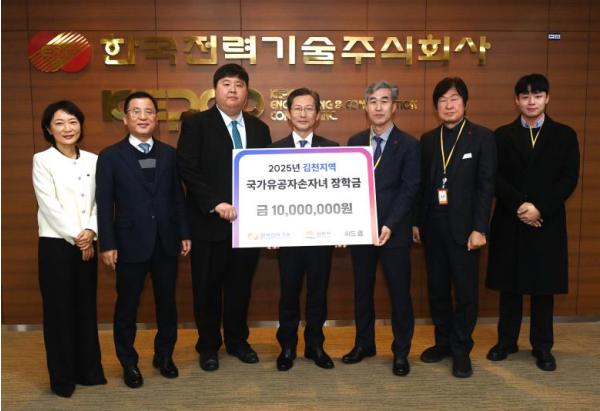 이번 장학금 지원은 국가유공자의 공헌과 희생을 기리고 그 후손들의 교육 기회를 확대하기 위한 것으로 한국전력기술 본사에서 김천시, 사회적 협동조합 씨드콥과 함께 전달식을 진행해 그 의미를 더했다.