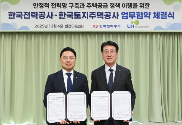한전은 12월 4일 서울 한전아트센터에서 LH와 '안정적 전력망 구축과 주택공급 정책 이행'을 위한 업무협약(MOU)을 체결했다. 이번 협약은 전력망 구축을 담당하는 한전과 주택·산단개발을 추진하는 LH가 상호 협력하여 수도권 3기 신도시를 비롯한 주요 개발지구에 경제적이고 안정적인 전력망을 구축하는데 목적이 있다.