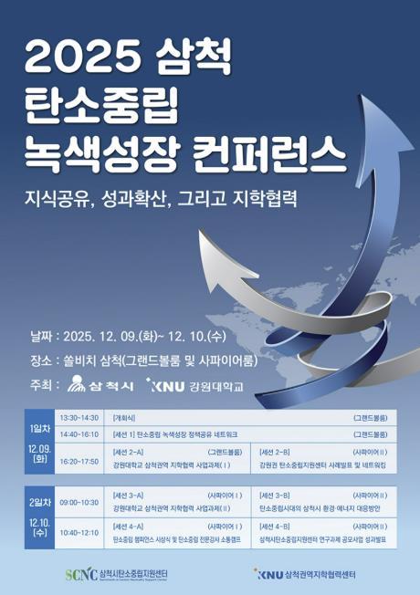 [한국제일신문, 김성옥기자] 삼척시와 강원대학교가 공동 주최하는 ‘2025 삼척 탄소중립 녹색성장 컨퍼런스’가 오는 12월 9일부터 10일까지 이틀간 쏠비치 삼척에서 개최된다.