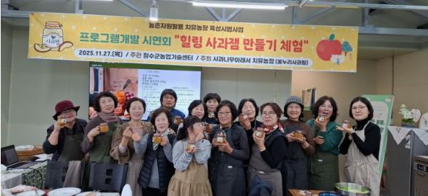 참여자들은 사과 등 농촌자원을 활용한 사과잼 만들기 체험을 통해 치유적 경험을 나누는 시간을 가졌다.