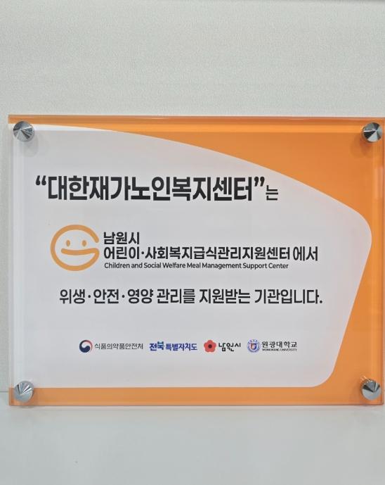 지난 9월에는 대한재가노인복지센터, 살림노인복지센터 등 15개소에 급식 위생 수준 향상과 영양 관리 강화를 위해 현판을 제작·부착했다.