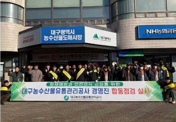[한국제일신문, 김성옥기자] 대구농수산물유통관리공사는 12월 4일, 동절기 화재 및 안전사고를 선제적으로 예방하기 위해 대구농수산물도매시장 전역에서 경영진과 전문의용소방대가 참여하는 합동 안전점검을 실시했다.