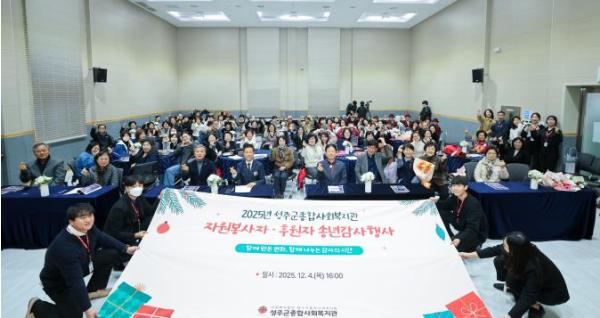 [한국제일신문, 김성옥기자] 성주군종합사회복지관에서는 12월 4일, 한 해 동안 지역사회 복지 향상에 헌신한 이들에게 감사 인사를 전하는'2025년 자원봉사자 및 후원자 송년감사행사' 를 개최했다.