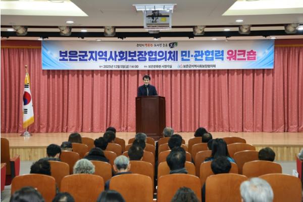 보은군지역사회보장협의체(공동위원장 구왕회, 최재형 보은군수)는 5일 보은문화원 시청각실에서 ‘2025년 보은군지역사회보장협의체 민‧관협력 워크숍’을 개최했다.