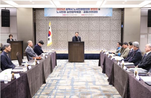 [한국제일신문, 김성옥기자] 삼척시는 2025년 지역 노사민정 활성화 사업을 공유하고, 삼척형 일자리 창출을 목표로 추진 중인 교육훈련시스템 구축 방안을 모색하기 위해 12월 5일 쏠비치 삼척에서 2025년 노사민정협의회 회의를 개최했다.