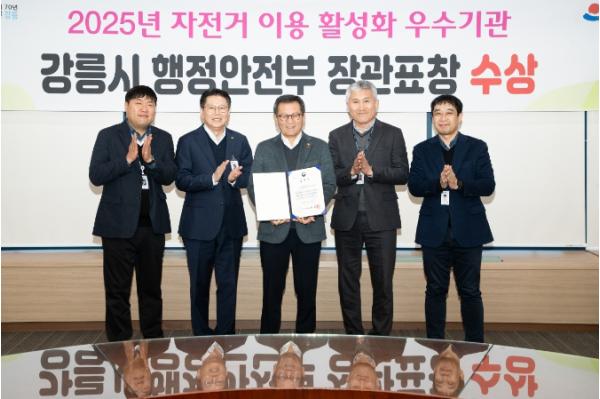 [한국제일신문, 김성옥기자] 강릉시는 자전거 이용 촉진과 안전한 교통문화 정착에 기여한 공로를 인정받아 행정안전부 장관표창을 수상했다고 8일 밝혔다.